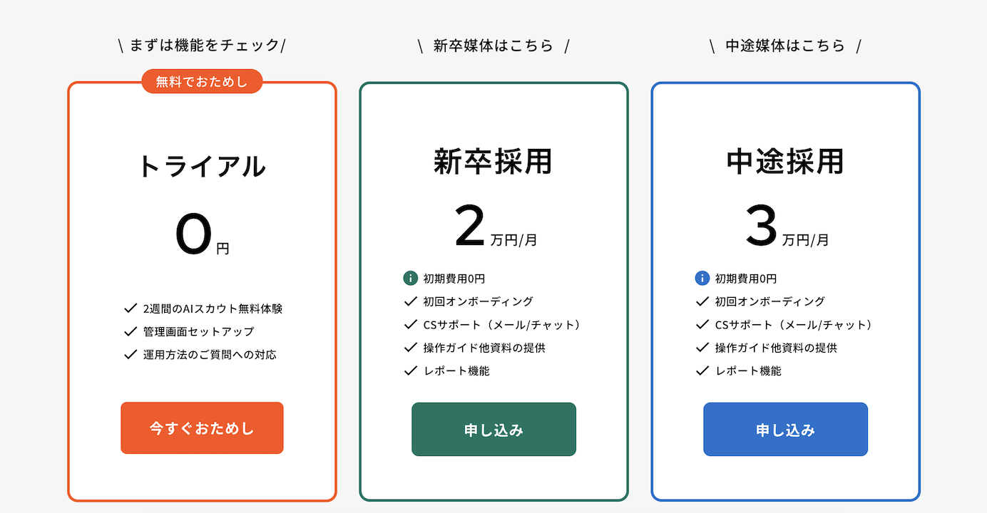 ●新卒採用 2万円 / 月 ●中途採用 3万円 / 月